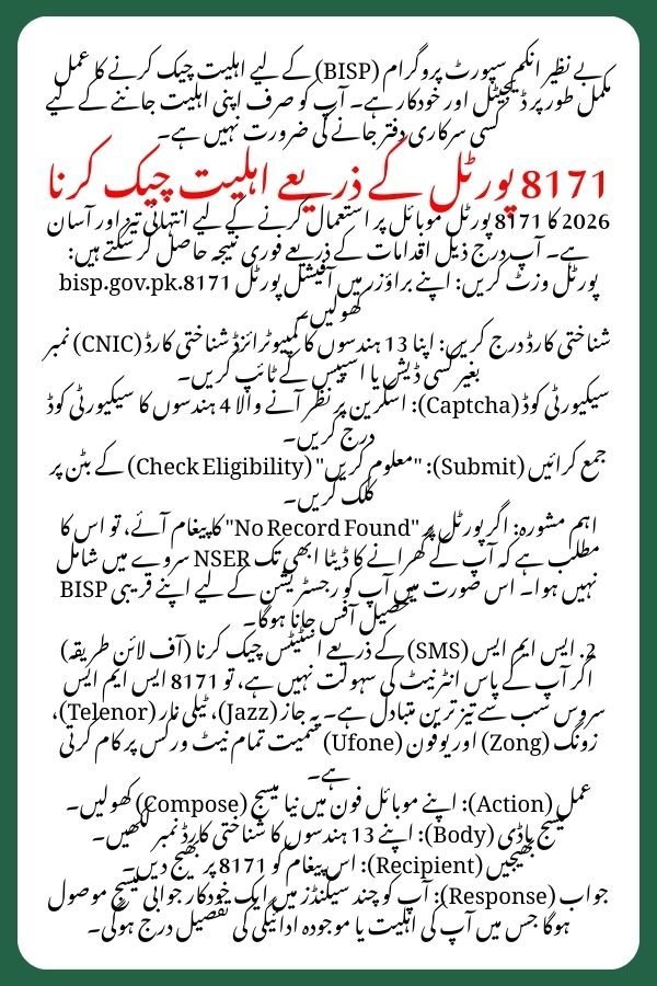 The 2026 version of the 8171 portal is designed to be mobile-friendly and fast. You no longer need to visit a BISP office just to ask, “Am I eligible?”