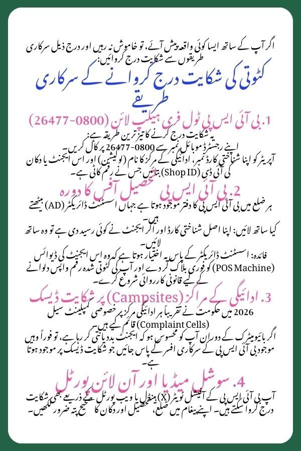 You can also register complaints via the official BISP Twitter (X) handle or the BISP web portal. Make sure to include the district, tehsil, and the specific shop location in your message.