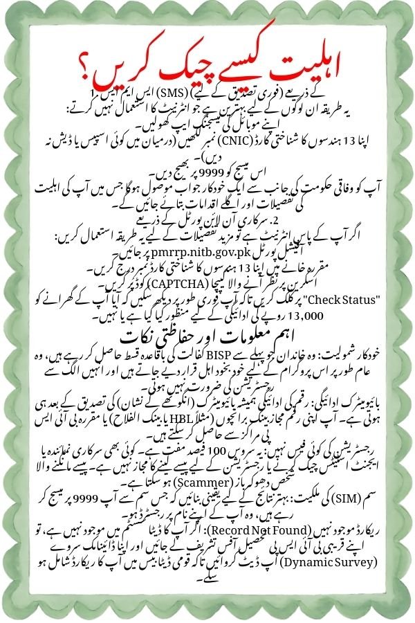 • “Record Not Found”: If your data is missing from the system, visit your nearest BISP Tehsil Office to update your household survey (Dynamic Survey) to ensure your records are current in the national database.